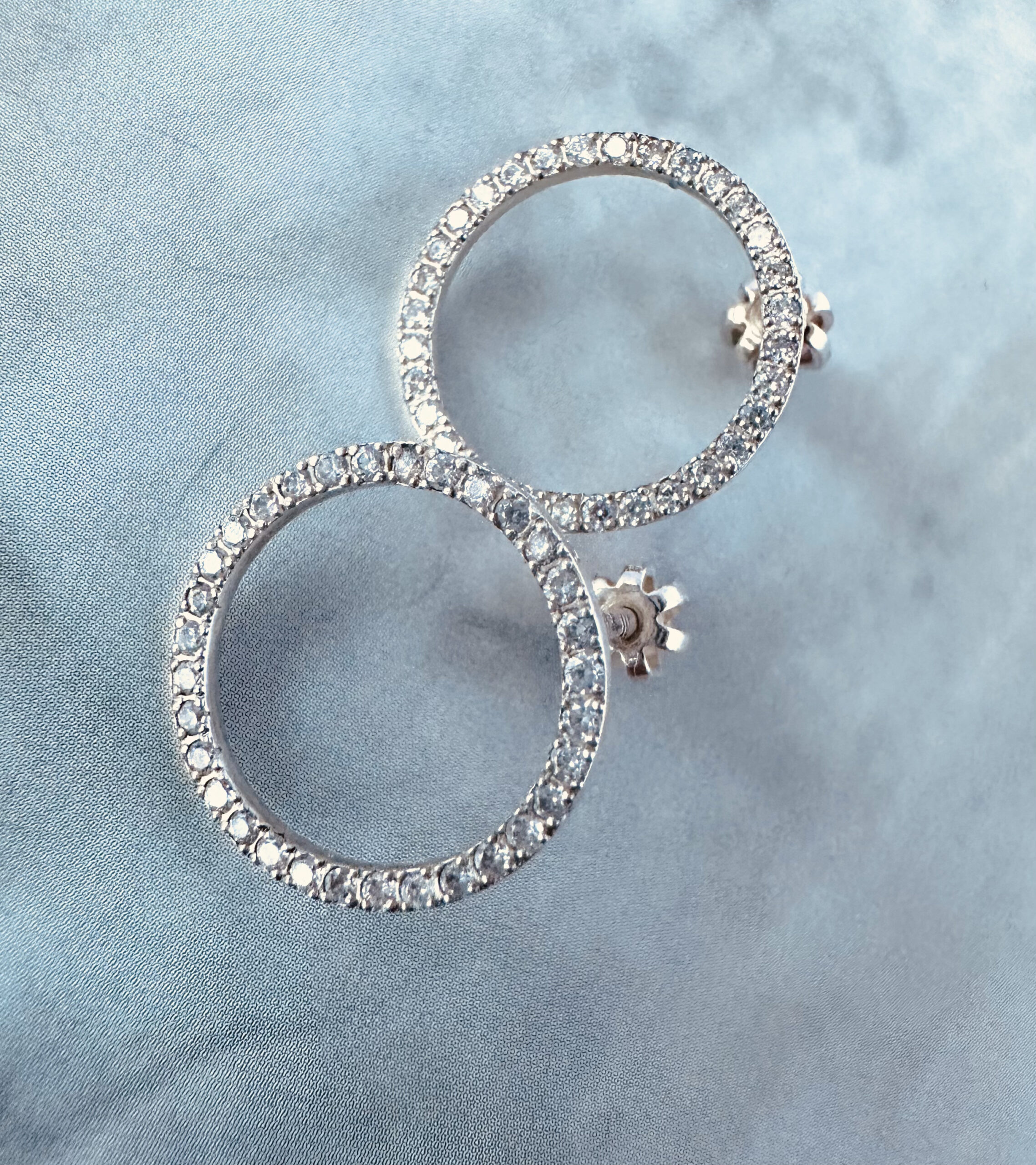 Autorské stříbrné náušnice Assar zdobí po celém obvodu ručně vsazené třpytivé zirkony Swarovski, které jim dodávají neobyčejný lesk. Náušnice jsou navíc vybaveny šroubovací puzetou, díky níž skvěle drží a nehrozí tak jejich ztráta. Jsou velmi elegantní a jemné, ideální pro každodenní nošení i speciální příležitosti.